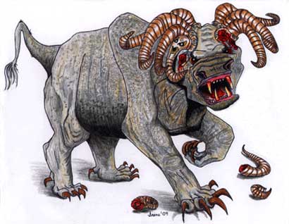 Well, this next beast is vicious ! It isn’t satisfied with just killing the people it stamped upon them and crushed them to make sure they were really dead !
