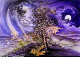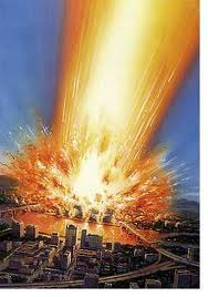 8:8 And the second angel sounded, and as it were a great mountain burning with fire was cast into the sea: and the third part of the sea became blood;